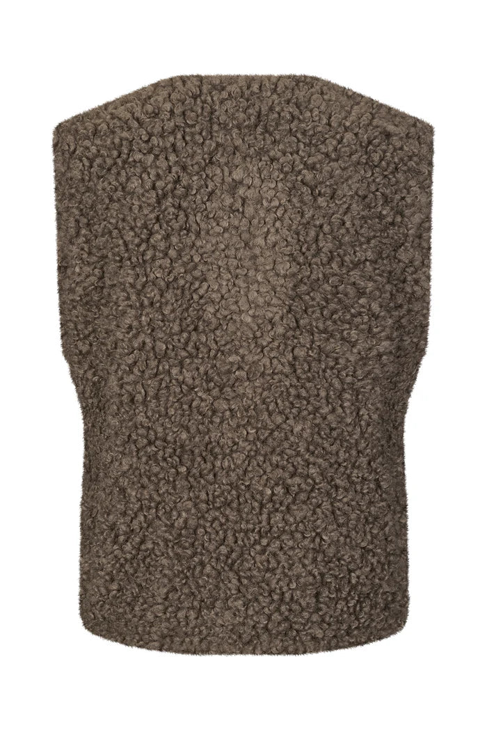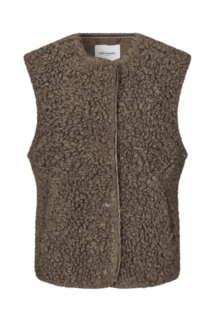 he VadaLL vest is a lovely new addition from Lollys Laundry, available in dark mocha and sand. The soft and cosy teddy vest features a round neckline and front button closure. The pockets and edges are finished with tone-on-tone faux leather trims, adding an exclusive touch.