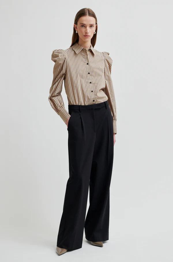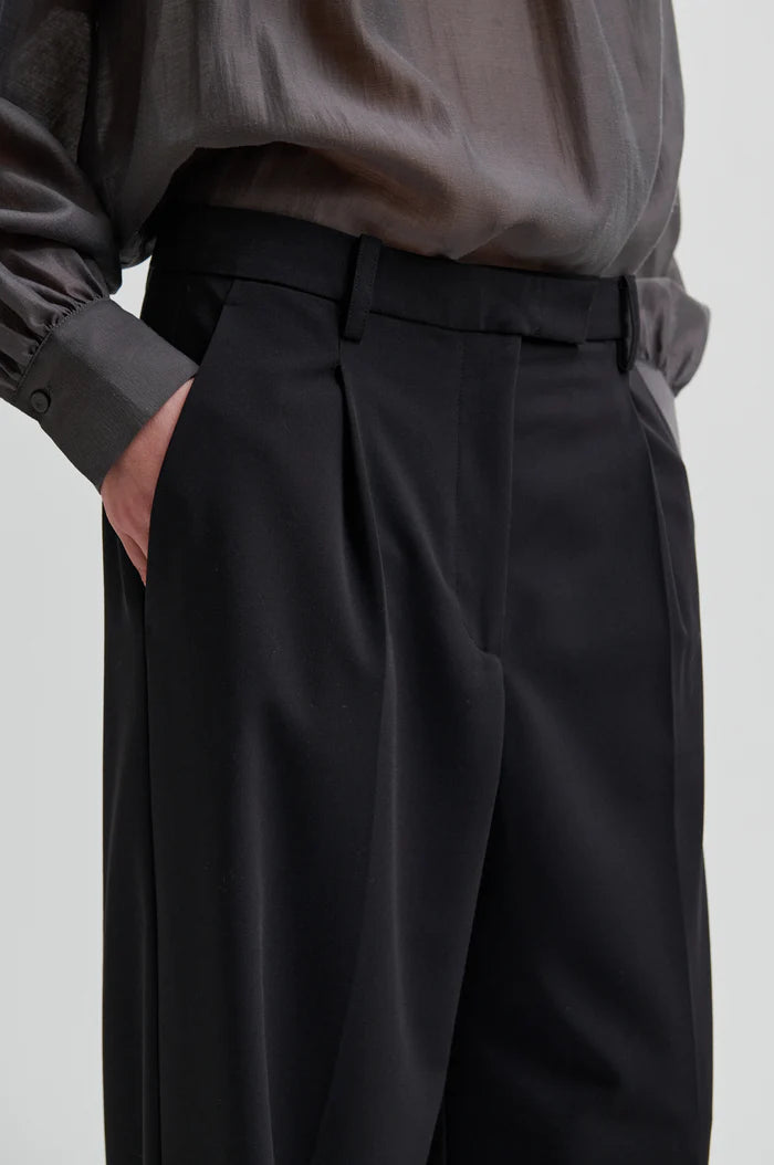 Second Female wide-leg trousers. Featuring a concealed zip, hook and button fastening. Two pockets at the front and two decorative pockets at the back. Pleats at waistband.